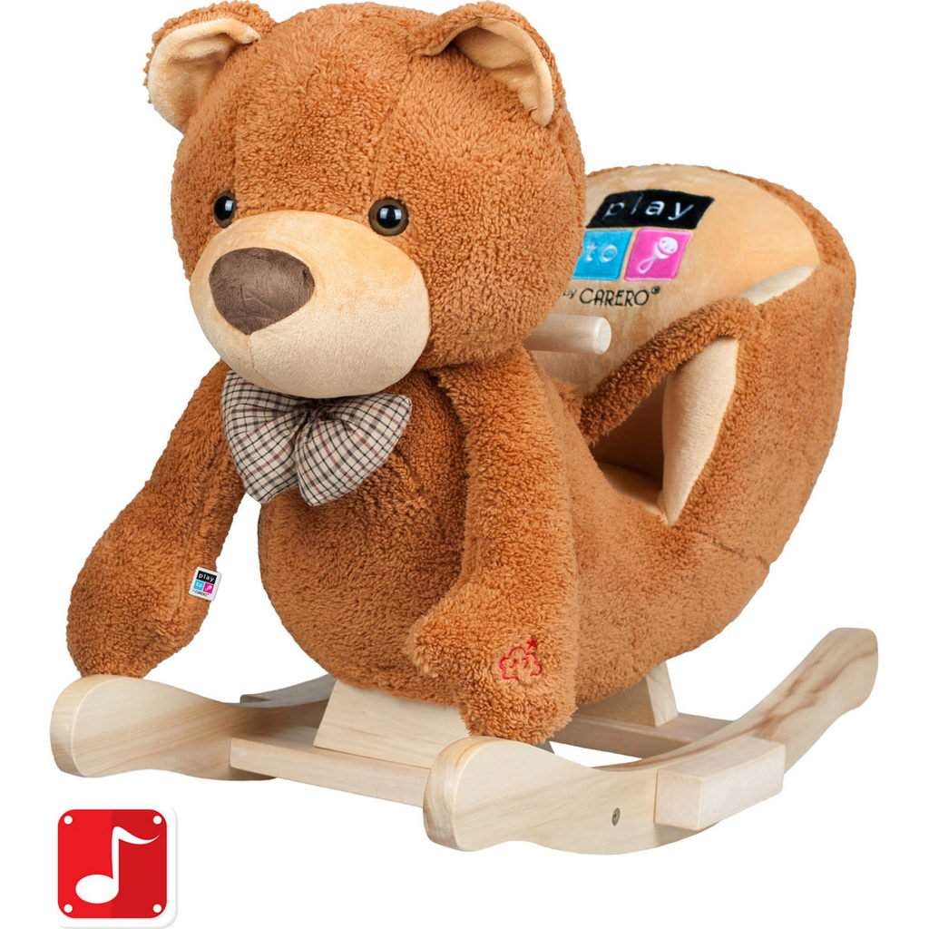 Neobyčejně krásný houpací medvídek PlayTo s mnoha vychytávkami. Hračka má sedlo, dřevěné rukojeti a dřevěná stupátka na nohy. Houpání je pro malé děti velmi důležité, stimuluje jejich smysly. Medvídek po zmáčknutí tlapky hraje melodii. Tlapky jsou měkké a pohyblivé. Dítě si samo dokáže z křesílka dosáhnout na tlapku a spustit ukolébavku. Medvídek je vyroben z měkkého plyšového materiálu, díky čemuž si Vaše dítě může dlouho užívat skvělou zábavu. Sedlo je pohodlné, bezpečné a krásně tvarované. Dítě lze připoutat pomocí bezpečnostního pásu. Vhodné pro děti od 18 měsíců. Rozměry: Hračka s houpací části: dxvxš: cca 65x60x40 cm. Výška sedadla od země: cca 25 cm. Křesílko: šxhxv: cca 20x17x26 cm. Stupátko na nohy: dxš: cca 13x3 cm.